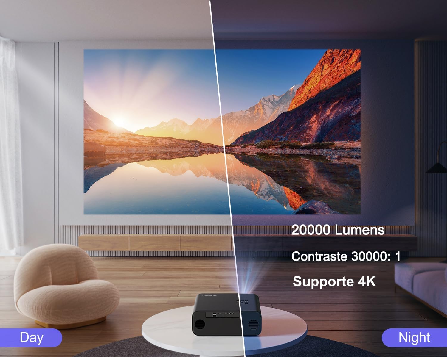 【Auto Focus/Keystone】 Vidéoprojecteur 4K WiFi Bluetooth 35000 Lumens Full HD 1080P, WiMiUS Projecteur 4K Supporté Zoom 50% Vidéoprojecteur WiFi6 Portable Home Cinéma/Extérieur pour Phone/TV Stick/PS5