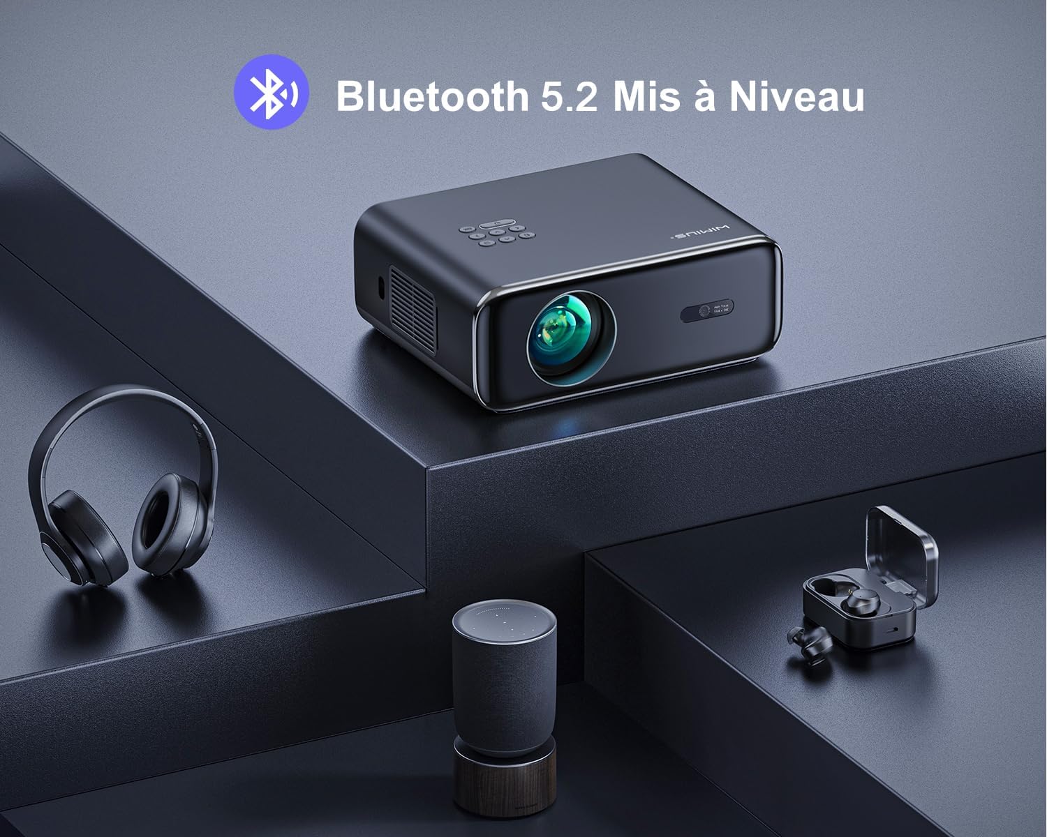 - 💖【Projecteur de Dernier WiFi6 Ultra-Rapide et Bluetooth 5.2】En plus le WiFi 2.4G/5G, ce vidéoprojecteur 4k adopte de la dernière technologie wifi 6, par rapport aux autres projecteurs avec seulement 2.4G, la connexion sans fil avec vos phones iOS/Android/Tablette est plus rapide, la transmission vidéo est plus stable et fluide, et le délai de jeu est réduit. La puce Bluetooth 5.2 permet de connecter sans fil aux écouteurs/enceintes Bluetooth/Airpods, Profitez de votre soirée cinéma maintenant.