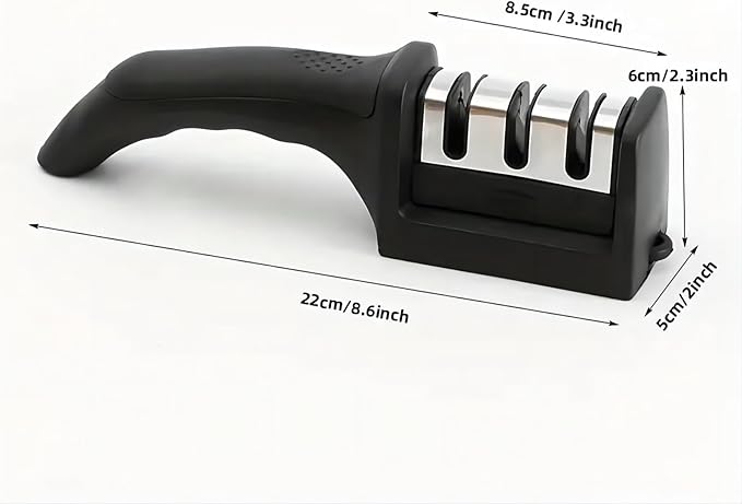 Aiguiseur de couteaux professionnel à 3 étapes avec lames en tungstène, diamant et céramique pour restaurer, affûter et polir les couteaux. Facile à utiliser, il convient aussi bien à la maison, aux camions alimentaires qu’aux restaurants. Idéal pour retrouver des couteaux tranchants et précis en quelques passages.