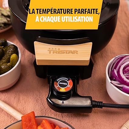 | Caractéristique spéciale | Poignées en bambou, thermostat réglable, fourchettes en inox incluses, pieds antidérapants |