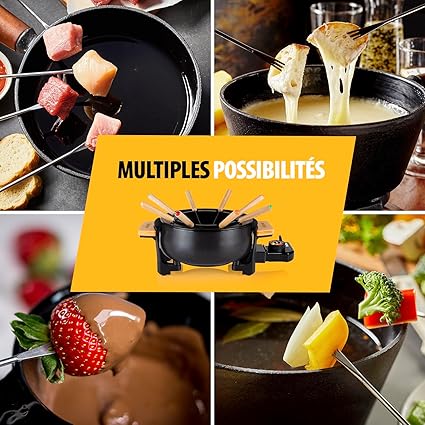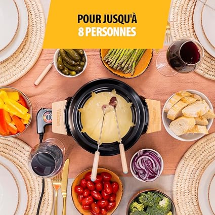 - Grâce au caquelon d’un volume de 1,5 L et aux fourchettes en inox incluses à marqueurs de couleur, il est adapté pour 8 personnes. Toutes les occasions seront bonnes pour profiter d’un repas convivial en famille ou entre amis.