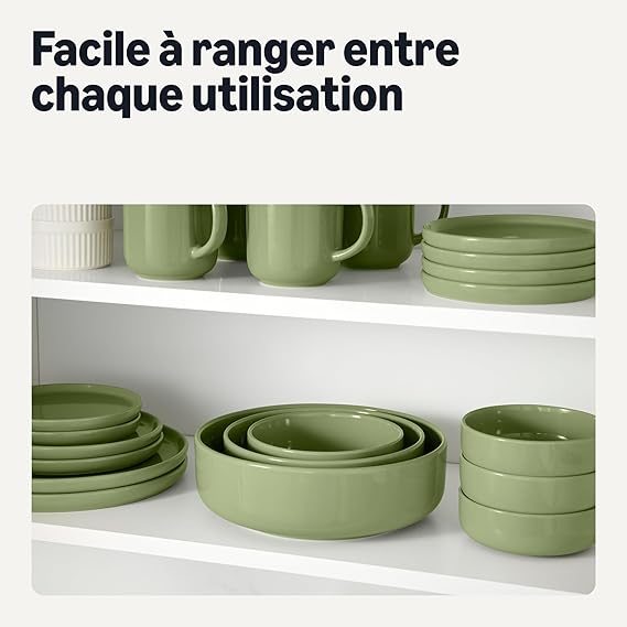 • GRÈS ÉMAILLɠ: fabriqué en grès avec une finition émaillée brillante ; compatible avec le contact alimentaire ; ne craint pas les taches