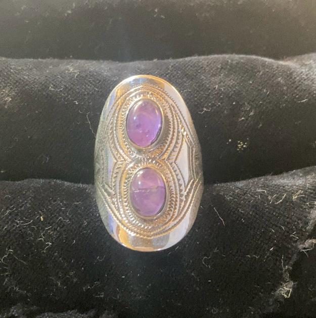 - Cette bague en argent séduit par son design délicat et intemporel. Elle est sublimée par deux pierres violettes soigneusement serties, dont l’éclat capte la lumière avec finesse. Le contraste entre la brillance de l’argent et la profondeur du violet crée un bijou à la fois élégant et moderne. Idéale pour un usage quotidien comme pour des occasions spéciales, cette bague apporte une note de caractère et de féminité à votre style.