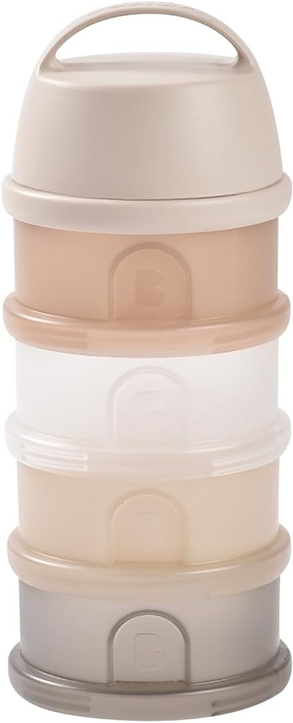 BÉABA, Boite doseuse de Lait en Poudre Empilable, 100% Hermétique, 4 Compartiments, Made in France, Grande contenance, Usage Evolutif, Facile à transporter, Translucide Argile