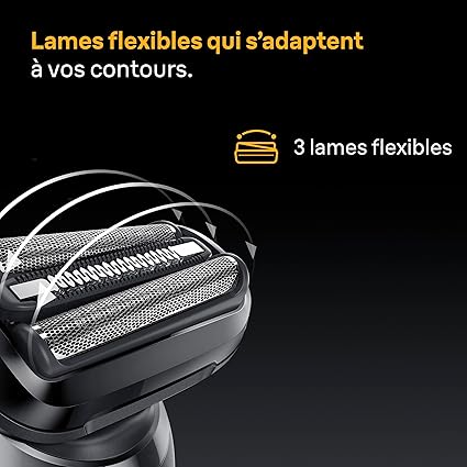 - Lames flexibles : 3 lames flexibles s’adaptent confortablement aux contours de votre visage