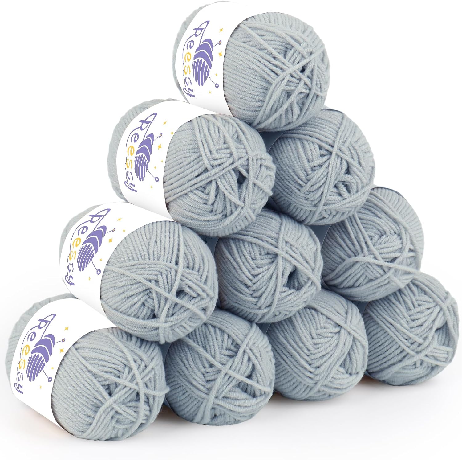 Lot de 10 pelotes de laine acrylique super douce, 5 plis, idéal pour le tricot, le crochet et tous vos projets DIY. Chaque pelote de 50 g offre un fil résistant, moelleux et facile à travailler. Coloris : gris-bleu, élégant et polyvalent.