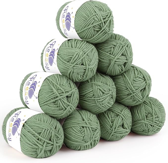 Lot de 10 pelotes de laine à tricoter en acrylique super douce à 5 plis pour crochet, tricot et loisirs créatifs – Kaki – 10 x 50 g – Pour projets