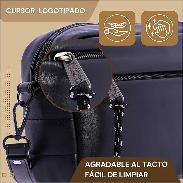 - Sac à main CORONEL TAPIOCA 26(largeur) x 7(profondeur) x 15(hauteur) cm en cuir synthétique de haute qualité et intérieur en polyester.