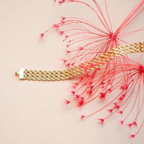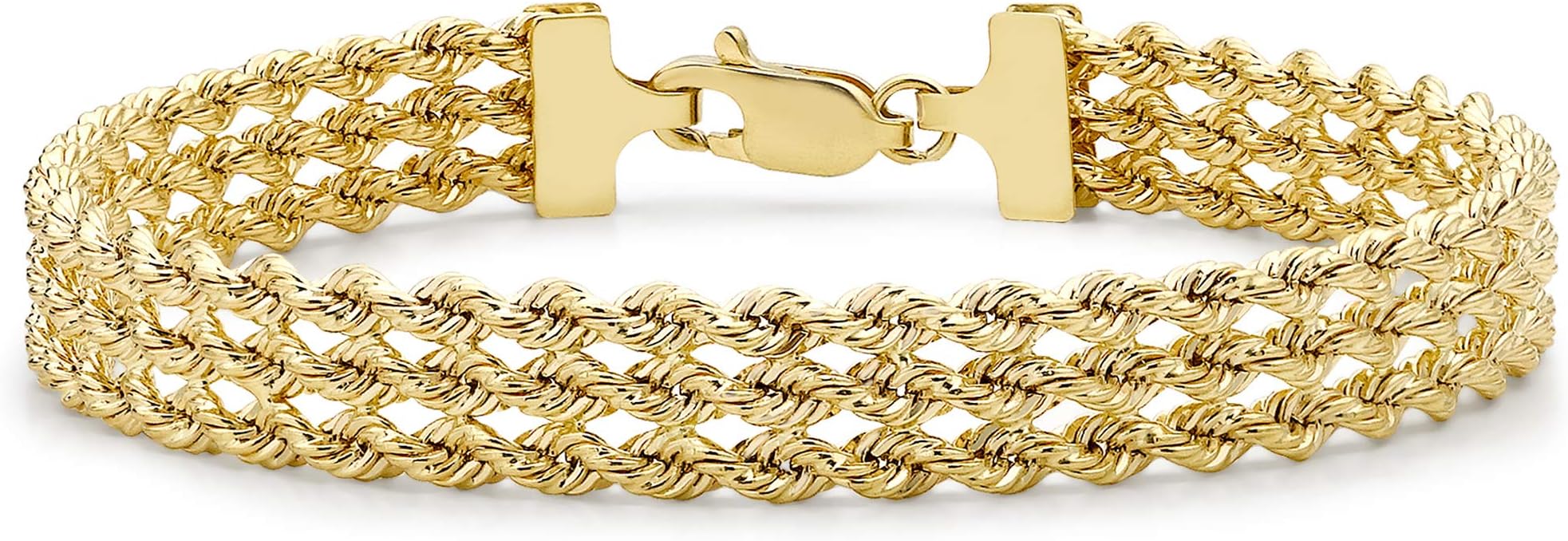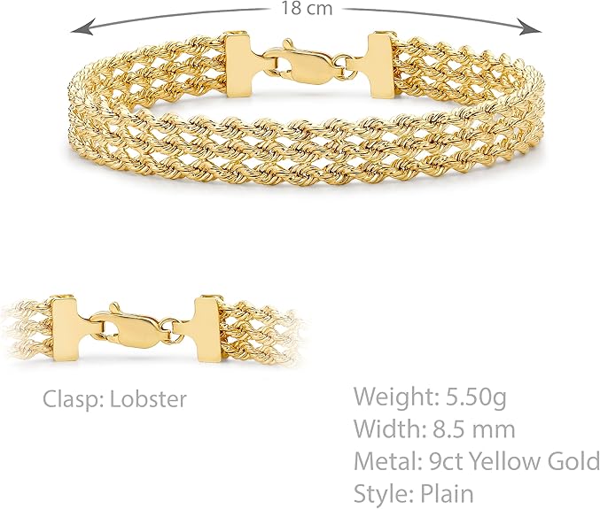 • LES MEILLEURS DÉTAILS : il s’agit d’un bracelet en corde creuse à 3 rangs en or jaune 9 ct de 8,5 mm de 18 cm.