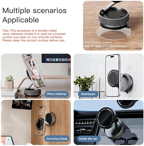 • Support de Téléphone Magnétique: Pour une utilisation en voiture : Ce support de téléphone magnétique est idéal pour les surfaces lisses comme le pare-brise avant ou l’écran central, mais déconseillé pour les tableaux de bord. Parfait pour les zones lisses de votre cuisine, salle de bain, salon ou salle de sport. Assurez-vous que la surface de montage est sèche et propre pour une adhérence optimale et gardez-la à l’abri de la lumière directe du soleil