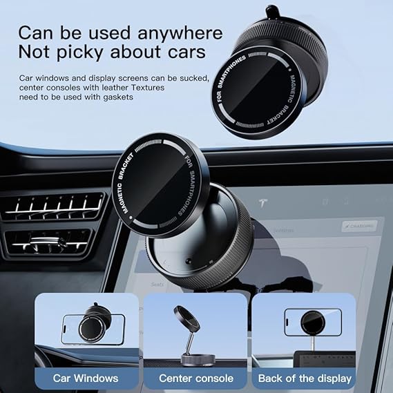 Gerbala Support de Téléphone de Voiture Magnétique à Aspiration sous Vide, Ventouse la Plus Puissante de 66 LB, Support de Téléphone de Voiture Magnétique Réglable à 360 ° (A)