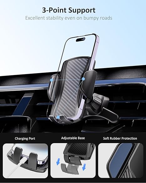 • Solide et stable: Le Hoppac support telephone voiture grille aeration est équipé d’un crochet en métal récemment amélioré et de 2 pieds supplémentaires pour former une structure triangulaire stable, qui peut être fixé sur la grille d’aération de manière plus stable. Contrairement aux ventouses ou aux supports adhésifs qui tombent toujours, notre support téléphone voiture ne bouge pas facilement, même à travers les bosses et les ralentisseurs