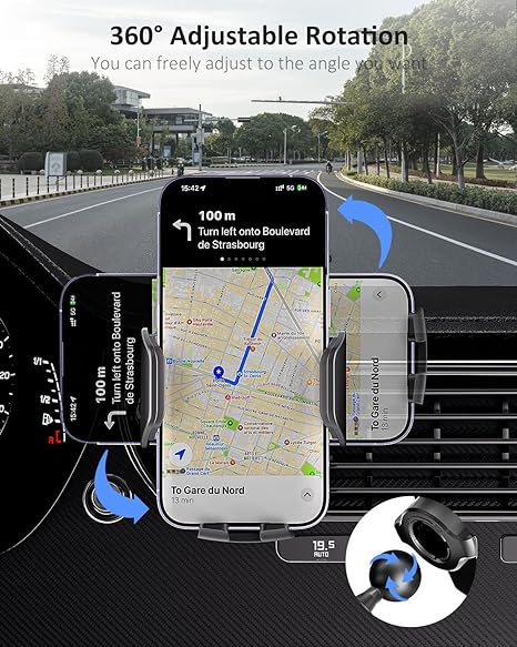 • Réglage à 360 degrés: Le accroche telephone voiture prend en charge une rotation à 360 degrés, vous pouvez l’ajuster à n’importe quel angle idéal, que ce soit vertical ou horizontal. Il est très approprié pour la navigation de voyage et rend la conduite plus sûre et plus pratique