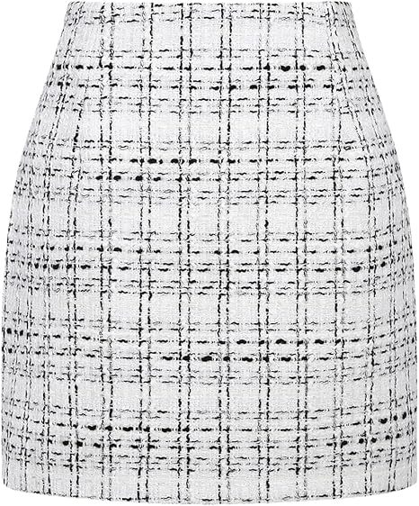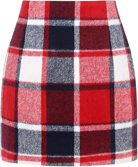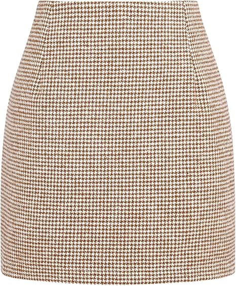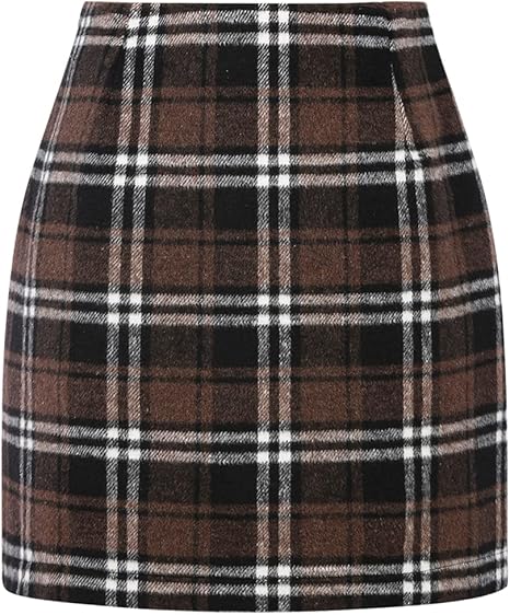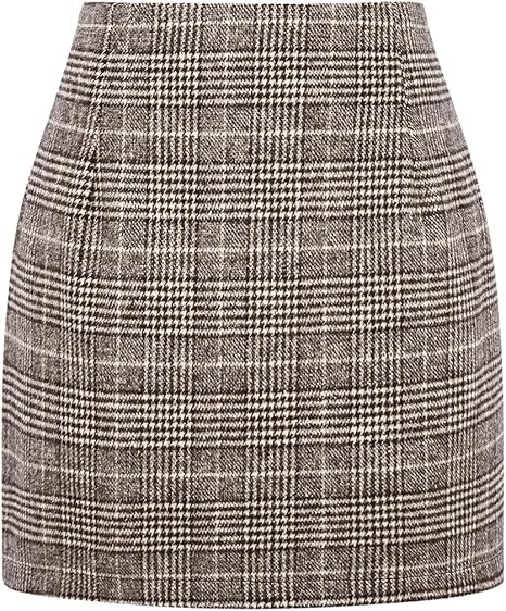 IDEALSANXUN Mini jupe crayon en laine avec motif à carreaux et taille haute, pour femme
