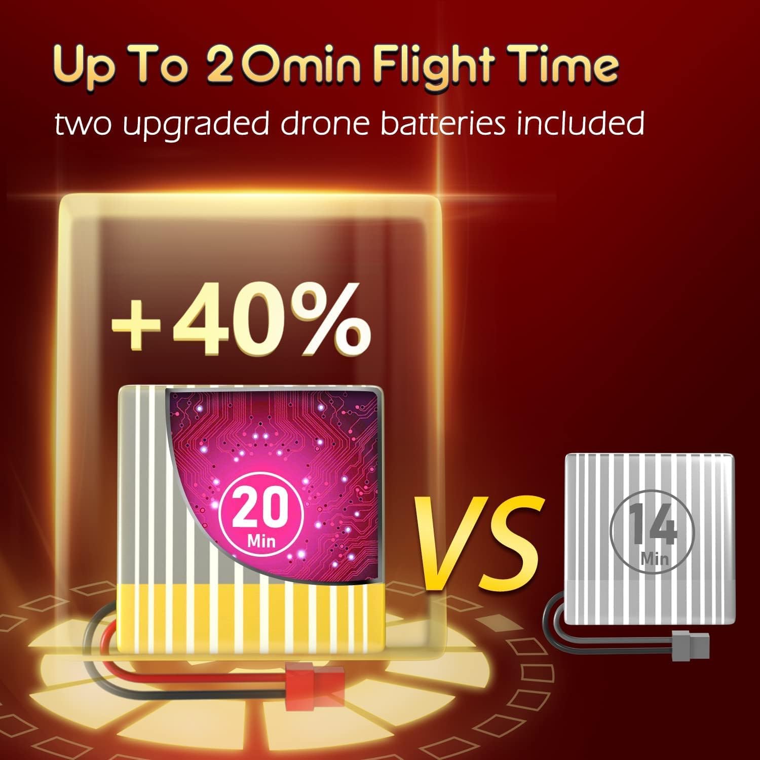 - 🎁【 Jusqu’à 20 Minutes de Vol 】– Ce drone pour enfants est livré avec deux batteries de pointe. Son temps de vol total peut aller jusqu’à 20 minutes alors que d’autres drones comparables ne proposent un temps de vol que de 14 minutes maximum. Son temps de vol est amélioré de plus de 40%.