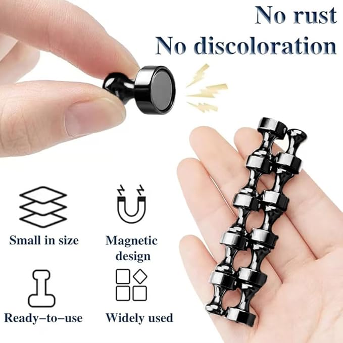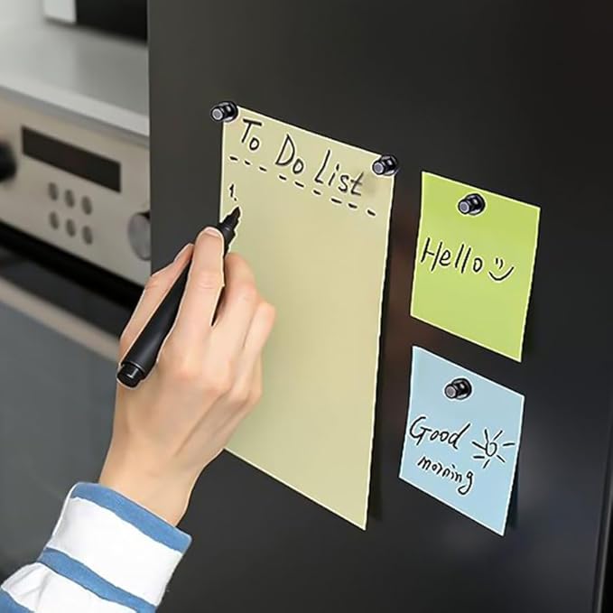 Ce lot de 12 aimants de réfrigérateur noirs est conçu pour offrir une fixation fiable et pratique sur toutes surfaces métalliques. Compacts mais puissants, ils permettent de maintenir photos, notes, listes de courses, documents ou cartes sans glisser ni tomber.