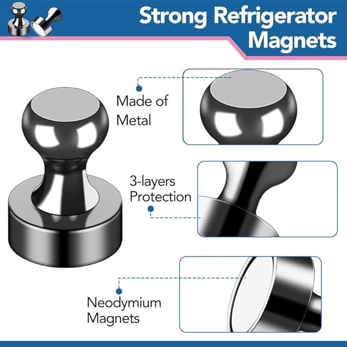 Polyvalents, ces aimants sont parfaits pour la cuisine, les salles de classe, les bureaux, ou encore les casier et espaces de rangement domestiques. Leur design discret en noir s’intègre facilement à tous les styles d’intérieur.