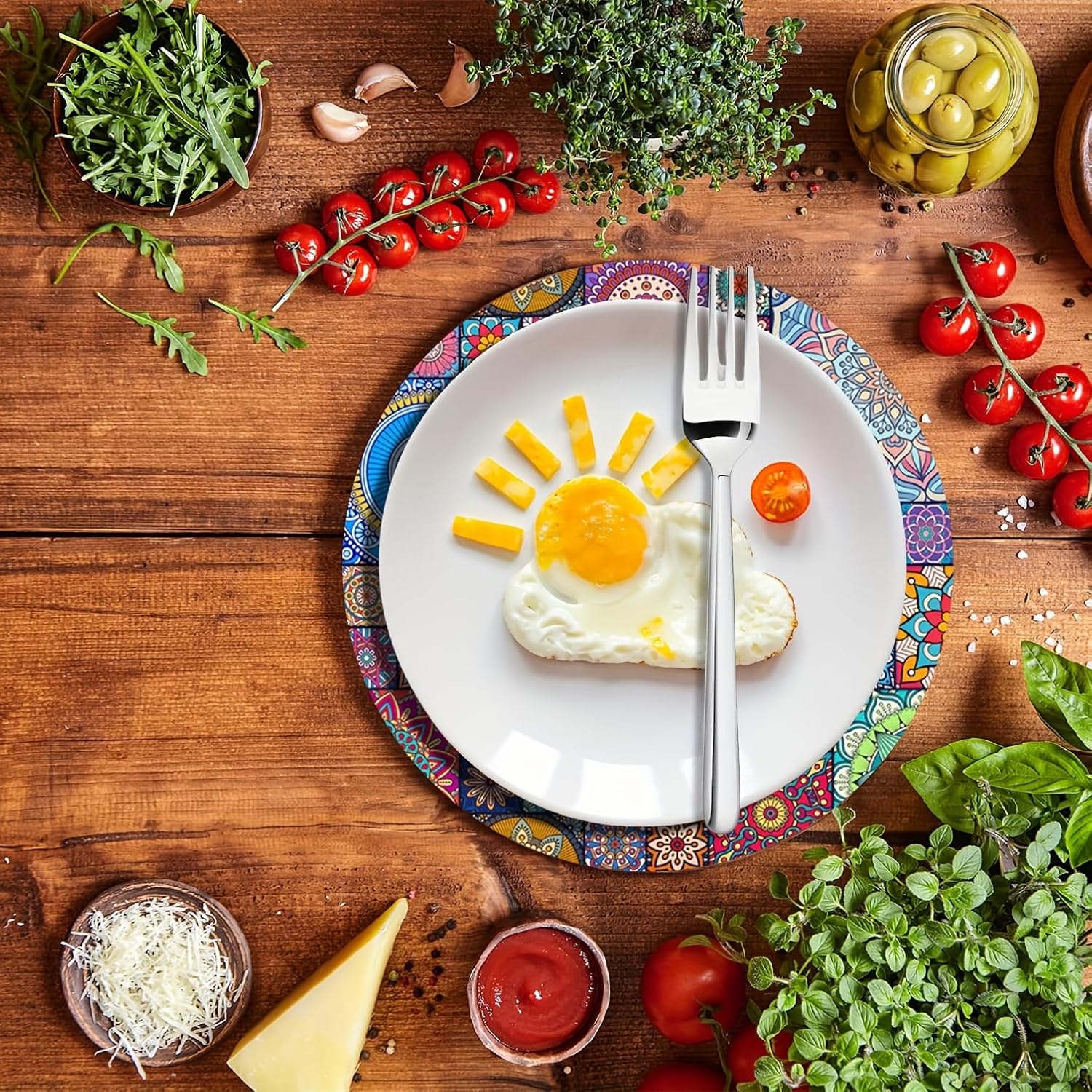 Leur surface antidérapante maintient assiettes et verres en place, tandis que leur nettoyage est facile et rapide : un simple essuyage suffit pour éliminer les résidus alimentaires. Les motifs géométriques colorés apportent une touche moderne et élégante, idéale pour embellir votre table au quotidien ou lors d’occasions spéciales.