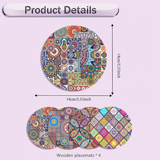 Ce lot de 4 sets de table décoratifs combine praticité, protection et style pour vos repas. Fabriqués avec des matériaux durables et résistants à la chaleur, ces sets protègent votre table contre les rayures, taches, éclaboussures et chaleur des plats chauds.