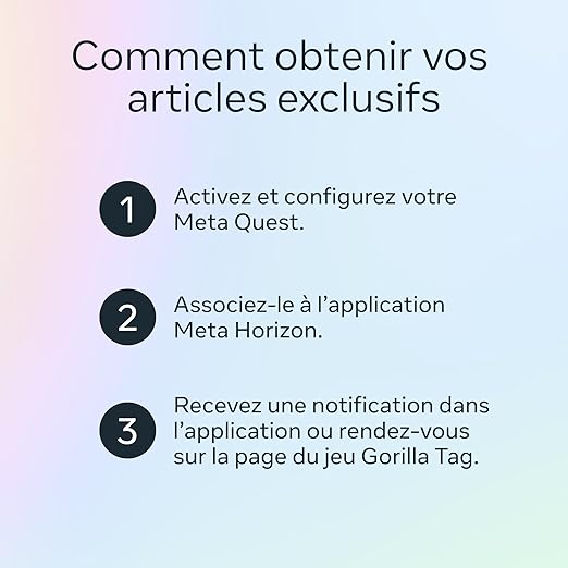 • Découvrez une façon unique de faire tout ce que vous adorez faire. Vous pouvez désormais obtenir des articles Gorilla Tag exclusifs et 1 000 pierres brillantes en achetant le Meta Quest 3 512 Go.