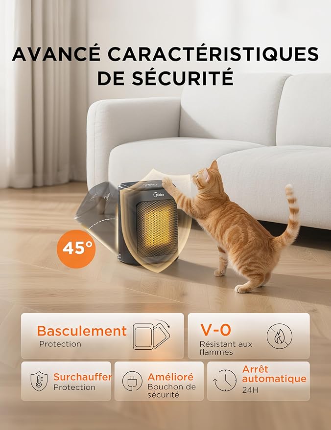 - Caractéristiques de sécurité améliorées: Donnant la priorité à votre sécurité, notre radiateur est équipé d’une protection anti-basculement à 45°, de matériaux ignifuges V-0, d’une protection contre la surchauffe et d’une prise de sécurité améliorée. L’arrêt automatique 24 heures sur 24 offre une tranquillité d’esprit supplémentaire pour un fonctionnement sans souci.