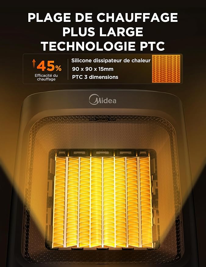 Midea Radiateur Soufflant En Céramique PTC 2000W Avec 4 Modes, Chauffage Portable, Silencieux Et Puissant, Protection Contre La Surchauffe, 5-35°C Réglable, Minuterie 1-24H, Mode Éco