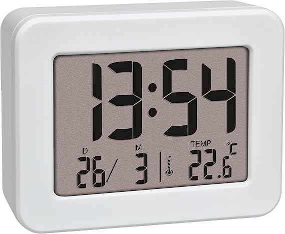 TFA Dostmann Mini réveil numérique, 60.2044.01, Fonctionne sur Piles, avec Alarme de réveil bruyante, température intérieure, Date, Horloge à Quartz, Voyage, Noir
