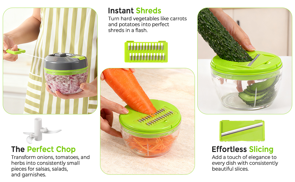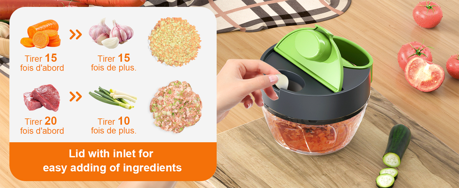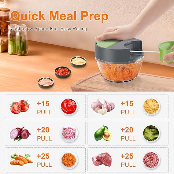 - Préparation Rapide des Légumes – Ce coupe oignon manuel permet de hacher sans effort sans avoir besoin d’électricité ! Le design à cordon tirant vous permet de contrôler la finesse de vos ingrédients à chaque tirage, vous permettant de hacher rapidement de l’ail, des légumes ou de moudre des noix en seulement 15 secondes.
