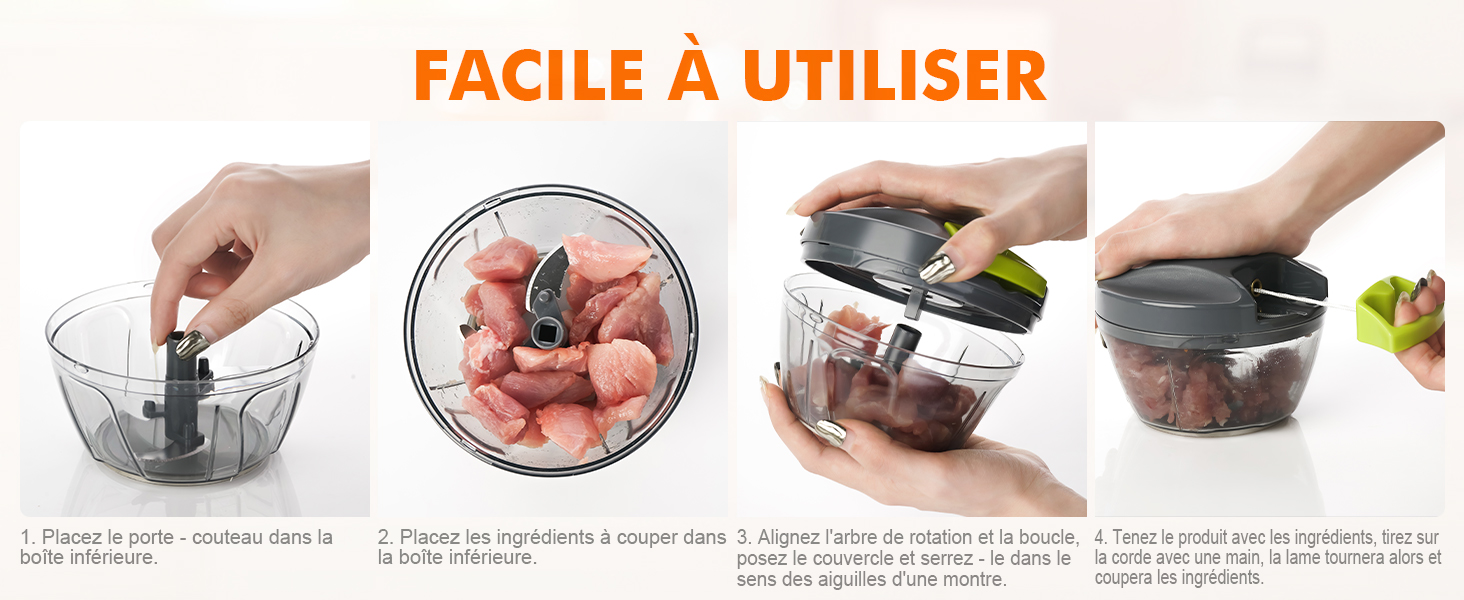 - Matériau sûr pour les Aliments – Notre mini hachoir manuel est fabriqué en PP, PS, 420J2, matériaux de qualité alimentaire, durables et sans BPA, ce qui permet de conserver les ingrédients nutritifs. Notre coupe-légumes vous permet de créer rapidement des aliments délicieux, nutritifs, sains et sûrs pour vous et votre famille.