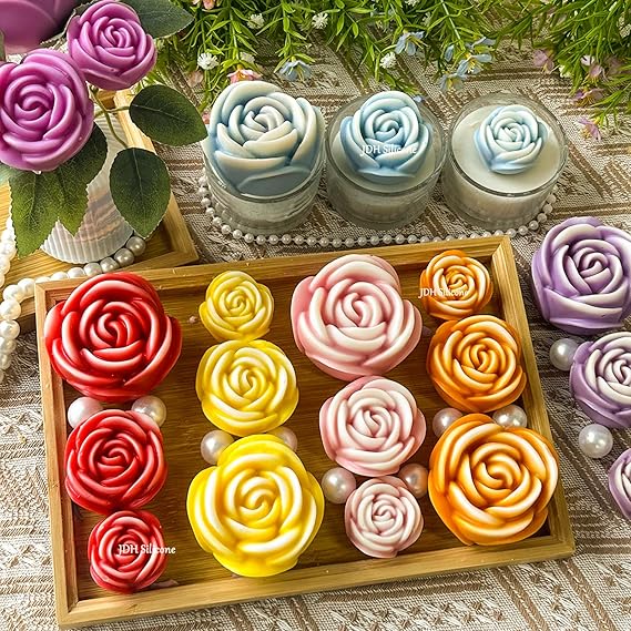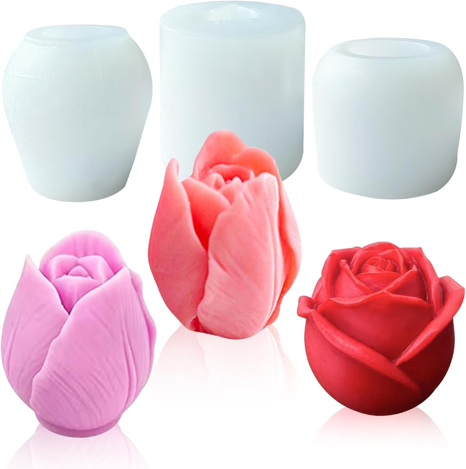 Moule silicone bougie fleur,3 pièces moule à bougie en forme de rose Sont Faciles à Démouler, dessert Parfaits pour la Fabrication De Bougies Parfumées Artisanales, Savons, Plâtre, DIY Résine