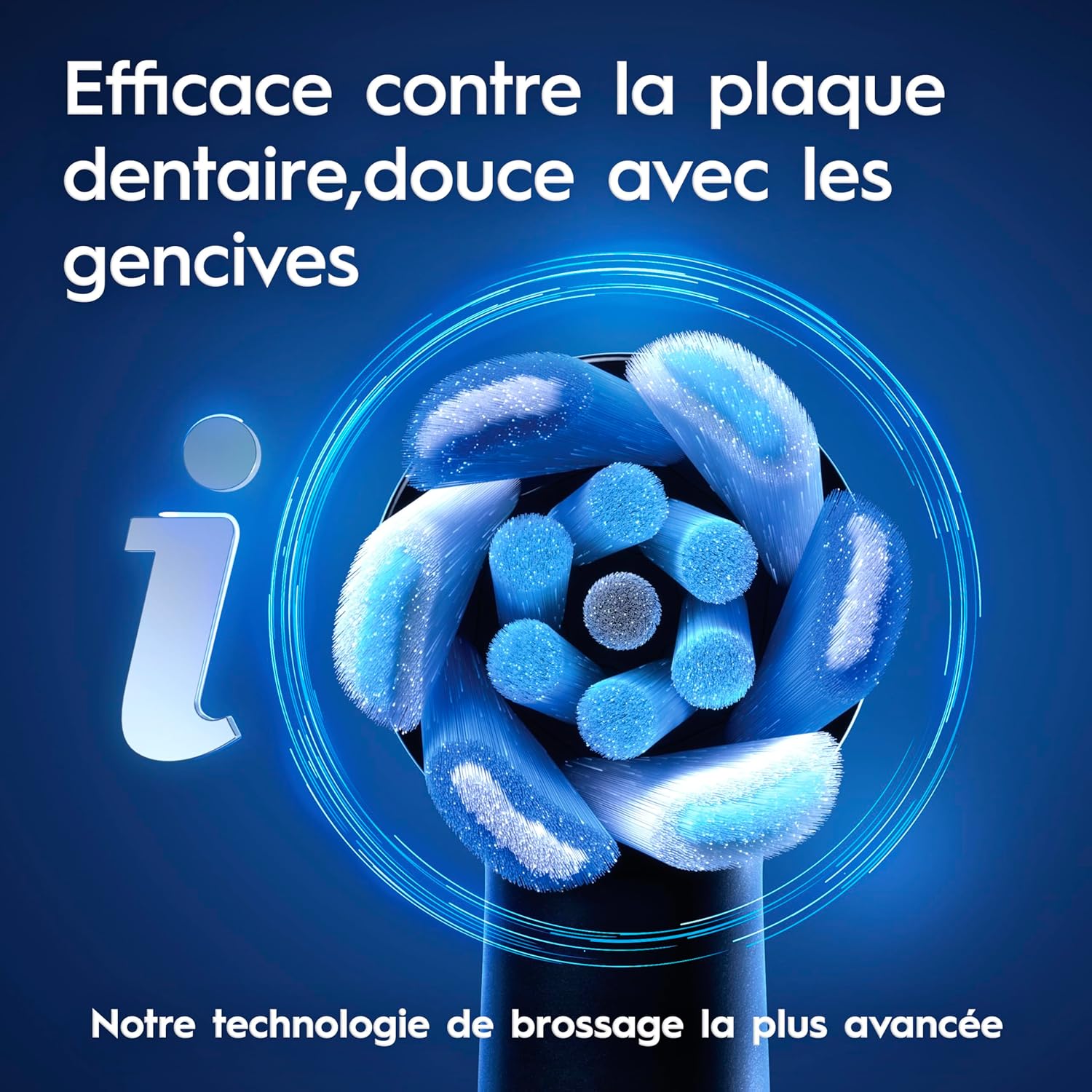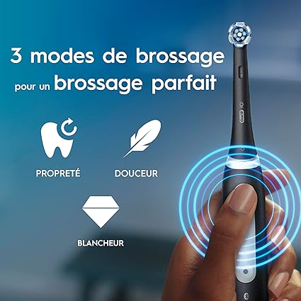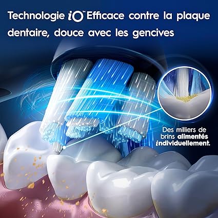 - LA TECHNOLOGIE LA PLUS AVANCÉE D’ORAL-B : Des dents 100% plus propres en une semaine par rapport à une brosse à dents manuelle grâce à la technologie iO d’Oral-B : efficace contre la plaque dentaire et doux pour les gencives