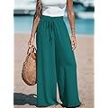 Pantalon Palazzo décontracté taille haute pour femme avec poche