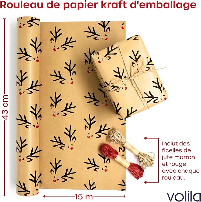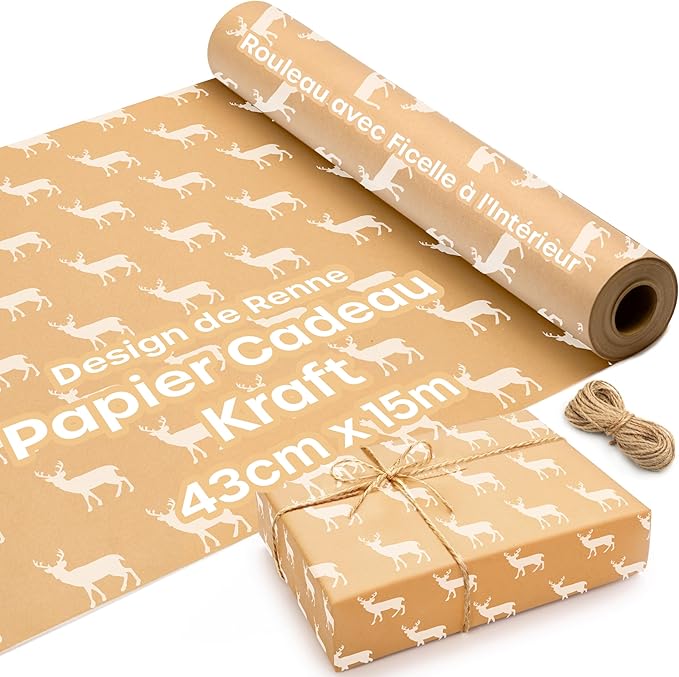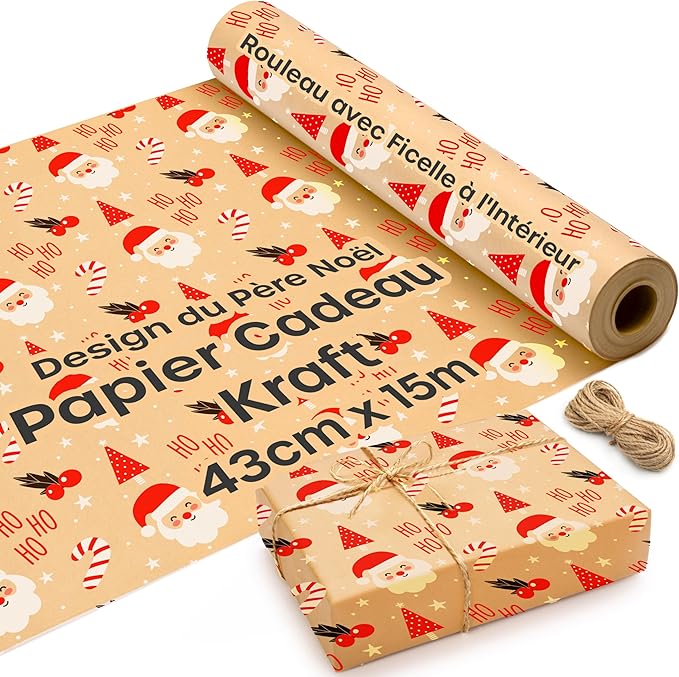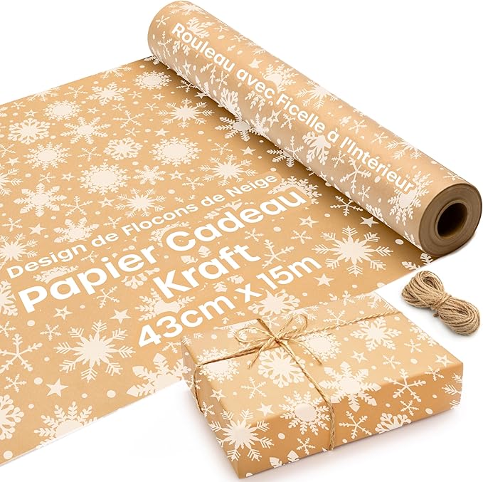 • 🎄【 PAPIER CADEAU NOEL GROS ROULEAU 】Le rouleau papier kraft est livré en rouleau de 15 m de long et mesure 43 cm de large. Nous avons ajouté une ficelle de Noël dans le rouleau de papier brun – n’oubliez pas de vérifier ! Tout ce dont vous avez besoin pour emballer vos cadeaux avec le rouleau de papier naturel est inclus.