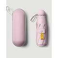 Parapluie pliant compact de couleur rose pastel, accompagné de son étui assorti. Léger et facile à transporter, il offre une protection UPF 50+ contre le soleil et la pluie.