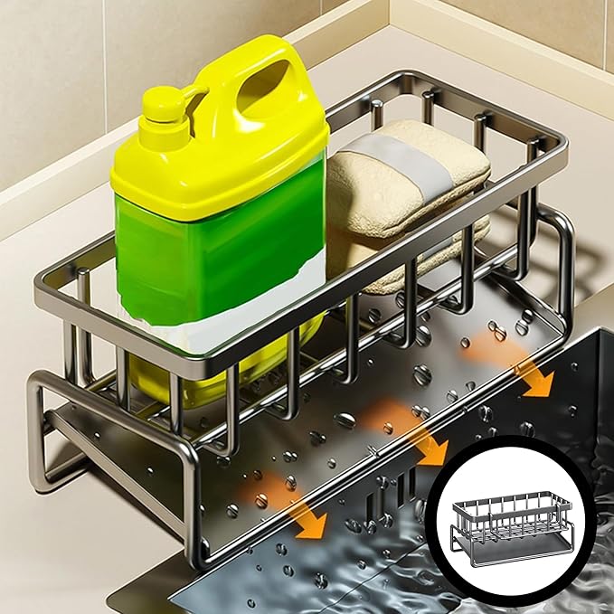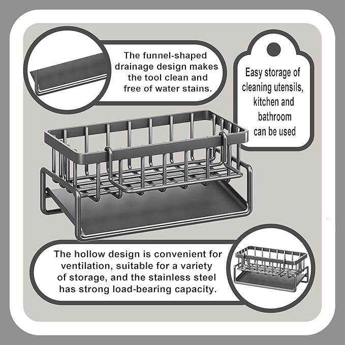 Ce porte-éponge pour évier de cuisine est conçu pour offrir un rangement pratique et hygiénique de vos accessoires de nettoyage. Fabriqué en acier inoxydable de haute qualité, il est résistant à la rouille, à l’humidité et à l’usure quotidienne, garantissant une longue durée de vie.
