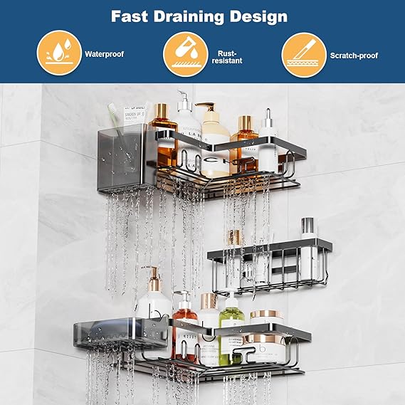 - Matériau Durable – Imperméable & Antirouille : Cet ensemble de rangement de douche est fabriqué en fer et en plastique de haute qualité, avec un traitement de surface spécial par pulvérisation qui prévient la rouille et est facile à nettoyer. Les supports de douche sont également résistants, même dans les environnements humides.
