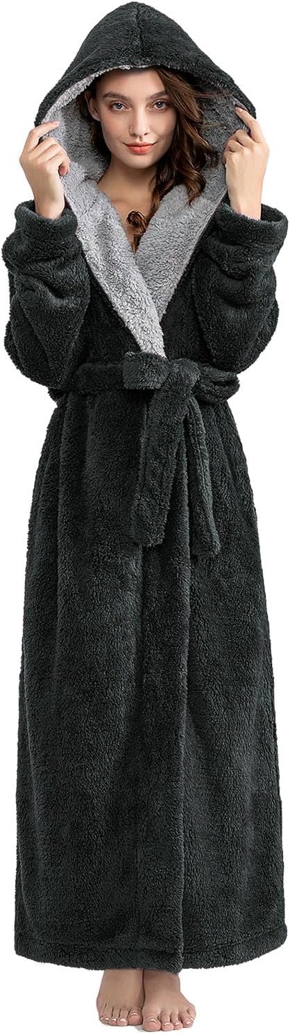 Robe de Chambre Femme Polaire: Peignoir de Bain Longue Hiver Chaude Doux Microfibre Douce et Épaisse Pour Femme Enceinte Maman Chambre Maison Noël Cadeau