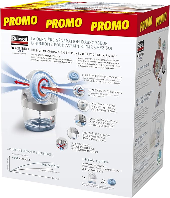 Soyez le premier à commenter “Rubson | Absorbeurs d’humidité AERO 360° Pure (2 appareils + 2 recharges) – Lot de 2 assainisseurs et déshumidificateurs d’air pour pièces de 20 m² – Recommandé par l’AFPRAL*”