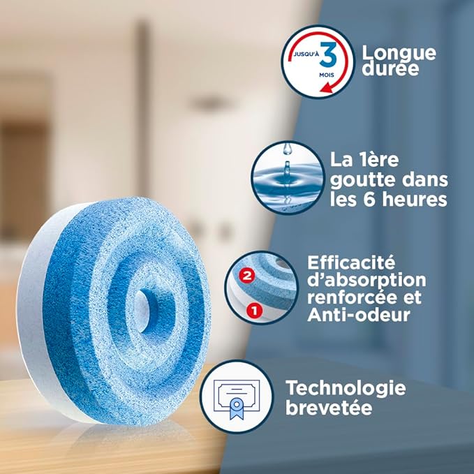 - Longue durée – Une recharge pour déshumidificateur AERO 360° dure jusqu’à 3 mois et est idéale pour les pièces dont la superficie maximale est de 20 m².