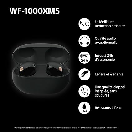 • DÉCOUVREZ LE SONY WF-1000XM5 – Ecouteurs premium qui combinent une qualité de son exceptionnelle avec la meilleure réduction du bruit.