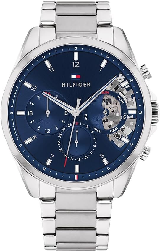 Tommy Hilfiger Montre Analogique Multifunction à Quartz pour homme avec Bracelet milanais en acier inoxydable et en piel