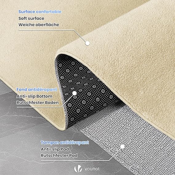 VOUNOT ® Tapis de Salon Moderne Ultra Doux Tapis à Poils Ras Lavable en Machine avec Un sous-Tapis antidérapant fourni pour Le Salon la Chambre ou la terrasse 80x150cm Beige