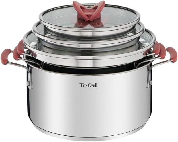 Soyez le premier à commenter “Tefal Origins Batterie de cuisine 8 pièces, 3 casseroles 16/18/20 cm, 2 poêles 20/24 cm, 3 couvercles verre, Non induction, Revêtement antiadhésif, Thermo-signal B461S546”