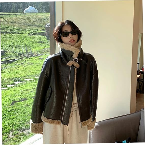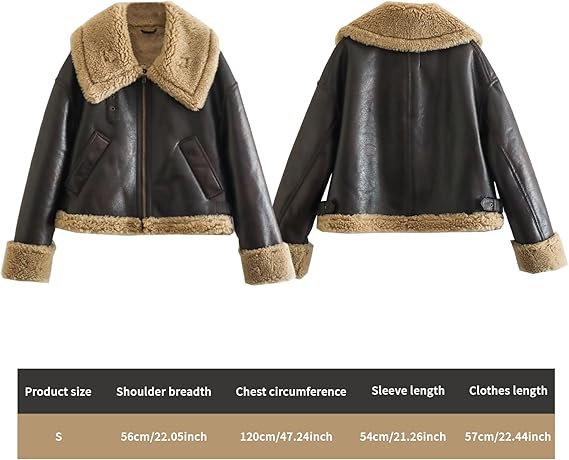 • Taille unique : notre veste en fourrure en cuir est de taille unique, largeur d’épaule : 56 cm/22,05 pouces, tour de poitrine : 120 cm/47,24 pouces, longueur des manches : 54 cm/21,26 pouces, longueur des vêtements : 57 cm/22,44 pouces, convient à la plupart des vêtements pour femmes, la coupe régulière offre un équilibre parfait entre un look ample et confortable et chic.