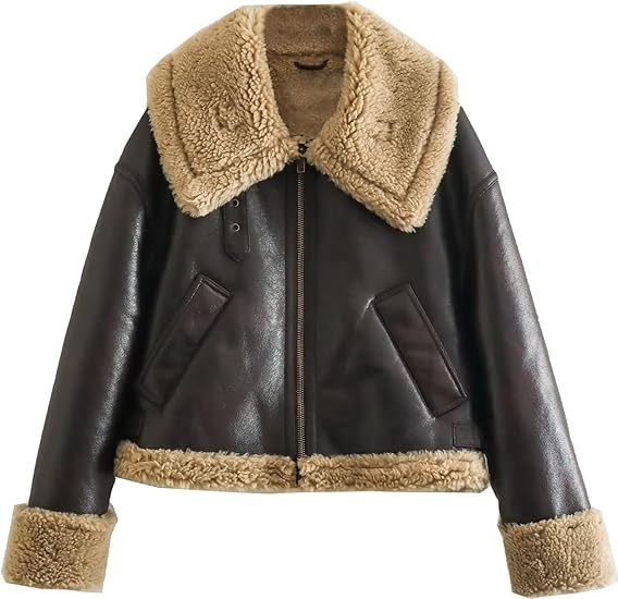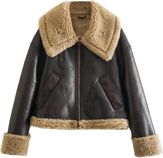 Soyez le premier à commenter “Veste en Cuir pour Femme avec Fourrure, Veste en Fourrure en Cuir à la Mode Manteau Court à Revers Chaud d’hiver avec Fermeture Glissière, pour Femmes et Filles – avec”