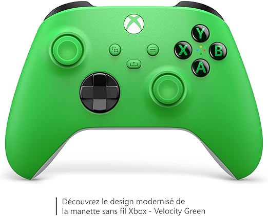 - Découvrez le design modernisé de la manette sans fil Xbox – Velocity Green, avec ses surfaces texturées et sa géométrie raffinée, pour un confort de jeu accru avec une autonomie de batterie allant jusqu’à 40 heures