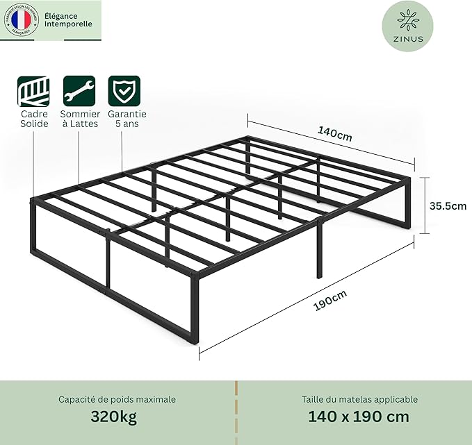 - OPTIMISEZ VOTRE ESPACE : Avec 31 cm de dégagement, ce lit Zinus offre un espace pratique sous le sommier à lattes pour stocker valises, boîtes ou linge et garder la chambre parfaitement rangée